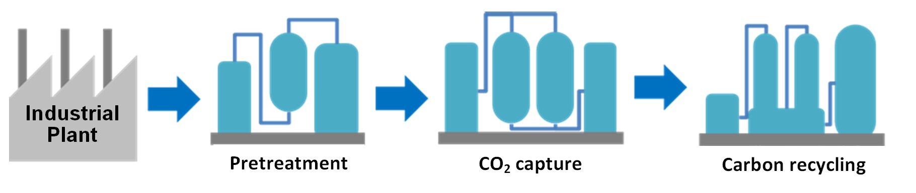 The CO₂ capture system being developed through this cross‑industry collaboration combines amine‑containing gel technology—which captures CO₂ from relatively high‑concentration gases such as combustion exhaust from factories—with energy‑saving operation using waste heat, as well as pretreatment technologies for removing NOx (nitrogen oxides) and SOx (sulfur oxides). By making the plant more compact and integrating it with other solutions, the project aims to create a model that is easy for SMEs to implement.